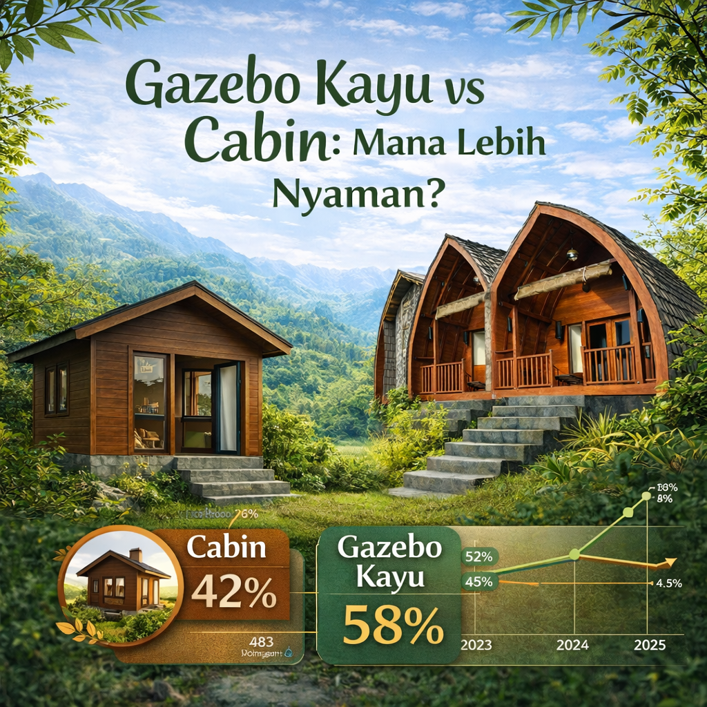 🌿 Tahukah kamu? Berdasarkan tren pencarian wisata alam di Indonesia dalam 3 tahun terakhir, minat terhadap akomodasi berbasis kayu seperti gazebo dan cabin meningkat lebih