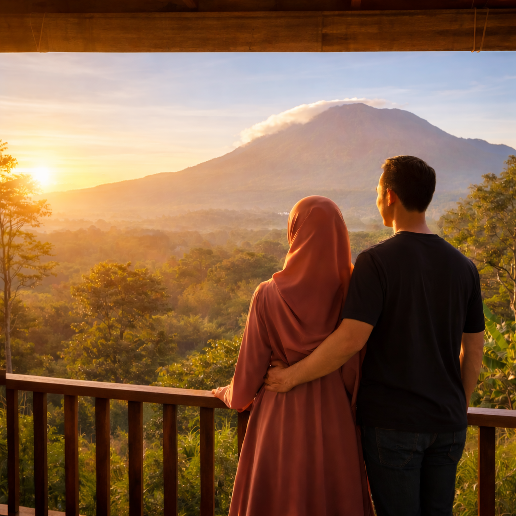 Sertakan elemen balkon—railing, kursi, atau tanaman—sebagai foreground untuk memberi skala dan kedalaman. Teknik ini membuat foto terasa lebih bercerita daripada sekadar “gunung di kejauhan”.